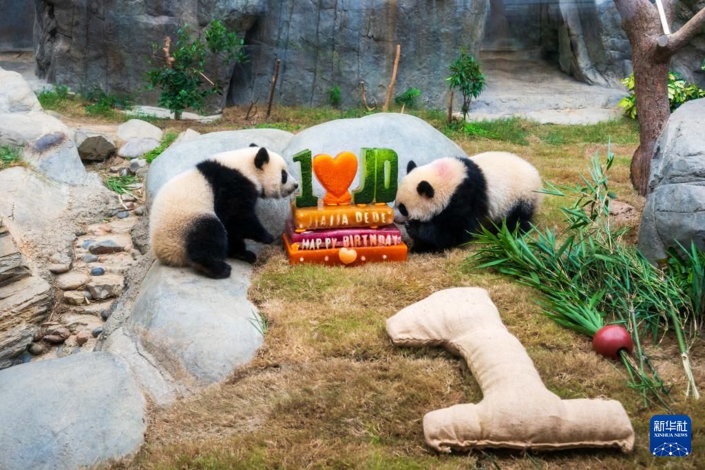 第一对双胞胎巨人熊猫“在香港生产”和“ Dede”庆祝他们的第一个生日